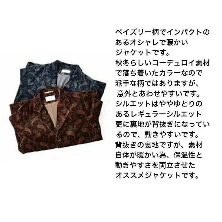 ジョンブル johnbull Johnbull ジャケット メンズ コーデュロイラペルドジャケット 冬物ファッション ブラウン ネイビー コーデュロイ ペイズリー柄 12798