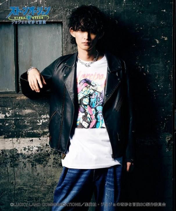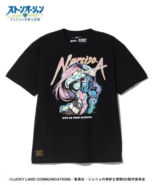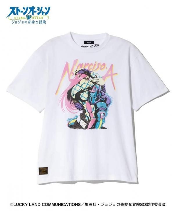 glamb グラム 半袖Tシャツ ユニセックス Narciso・A T-shirts/ナルシソ・アナスイTシャツ ホワイト ブラック GB0325/JJ08 ジョジョの奇妙な冒険